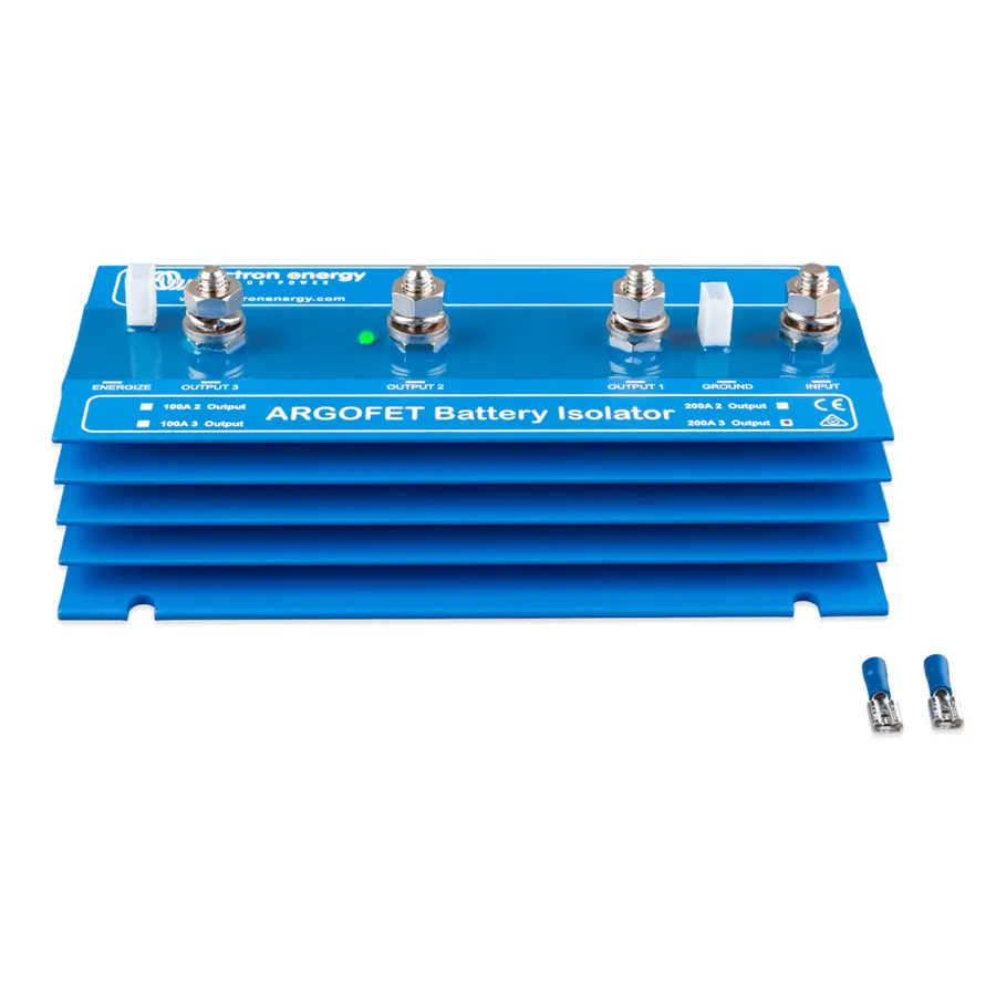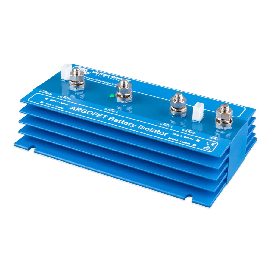 Argofet 200-3 je bateriový oddělovač určený pro současné nabíjení tří baterií z jednoho alternátoru nebo z jednoho výstupu nabíječky, aniž by byly baterie mezi sebou propojeny. Vybití servisní baterie tak neovlivní startovací baterii ani další připojené baterie v systému.