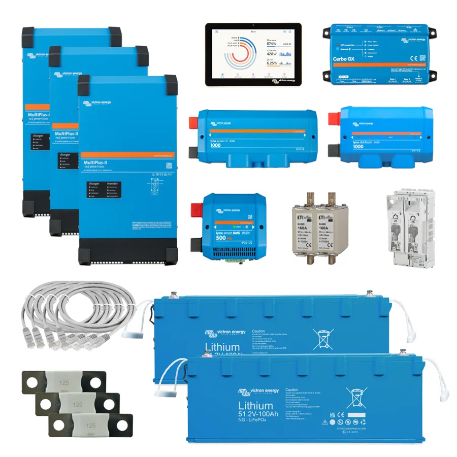 - Řízení: Cerbo GX MKII + GX Touch 50